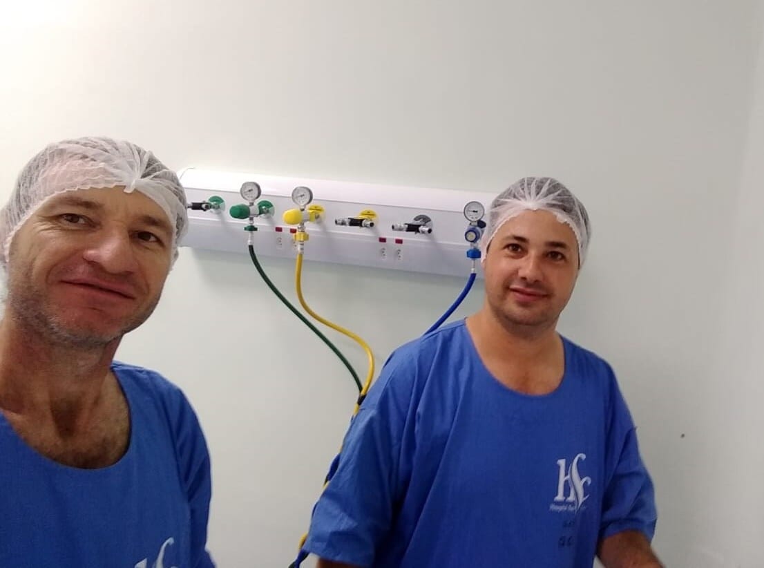 Dois Hospitais aceitaram a ajuda e receberam manutenção preventiva do sistema de gases de sete salas cirúrgicas (Hospital de Santa Cruz do Sul), com conserto de todas as tubulações de gases que apresentavam vazamentos, de substituição de mangueras, conectores e outros ajustes, além da entrega de um vestiário que será usado pelos profissionais do Hospital de Sinimbu, proporcionando a estes profissionais mais conforto.