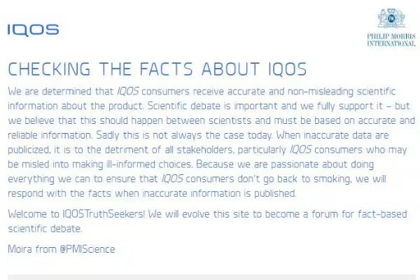PMI는 아이코스(IQOS) 소비자들에게 제품에 대해 정확하고 왜곡되지 않은 과학적 정보를 제공하고자 합니다. 과학적 논의는 매우 중요하며 PMI 역시 이를 전적으로 지지합니다. 그러나 이러한 논의는 과학자들에 의해 진행되어야 하며, 정확하고 신뢰할 수 있는 정보에 근거해야 합니다. 하지만 안타깝게도 그렇지 않은 경우도 발생합니다. 부정확한 데이터가 발표되면 이해관계자들에게 피해를 줄 수 있고, 특히 아이코스 소비자들이 잘못된 정보에 기반한 결정을 하도록 할 수 있습니다. PMI는 아이코스 소비자들이 일반 담배의 흡연으로 되돌아가지 않도록 하기 위해 최선을 다하고 있습니다. 따라서 제품과 관련하여 잘못된 정보가 있을 경우 정확한 사실을 바탕으로 대응할 예정입니다.