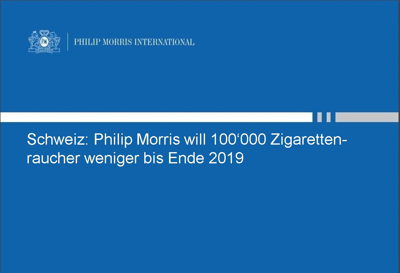 Bereits im Mai hat Philip Morris Schweiz bekannt gegeben, ihre herkömmlichen Zigaretten nicht mehr in Zeitungen, auf Werbeplakaten, in Kinos und auf Festivals in der Schweiz zu bewerben. Diese Kanäle werden ausschliesslich für Informationen über neue Produkte wie IQOS genutzt. Auch die Plattform für den OnlineZigarettenverkauf, www.zigoo.ch, sowie die Internetpräsenz von L&M wurden eingestellt. Erwachsene Raucher werden jeweils auf die Website zur Vermarktung von IQOS weitergeleitet. Dieses Produkt richtet sich an erwachsene Raucher, die eine Alternative zu Zigaretten suchen. Die beste Option ist immer, nicht mit dem Rauchen zu beginnen oder das Rauchen aufzugeben.