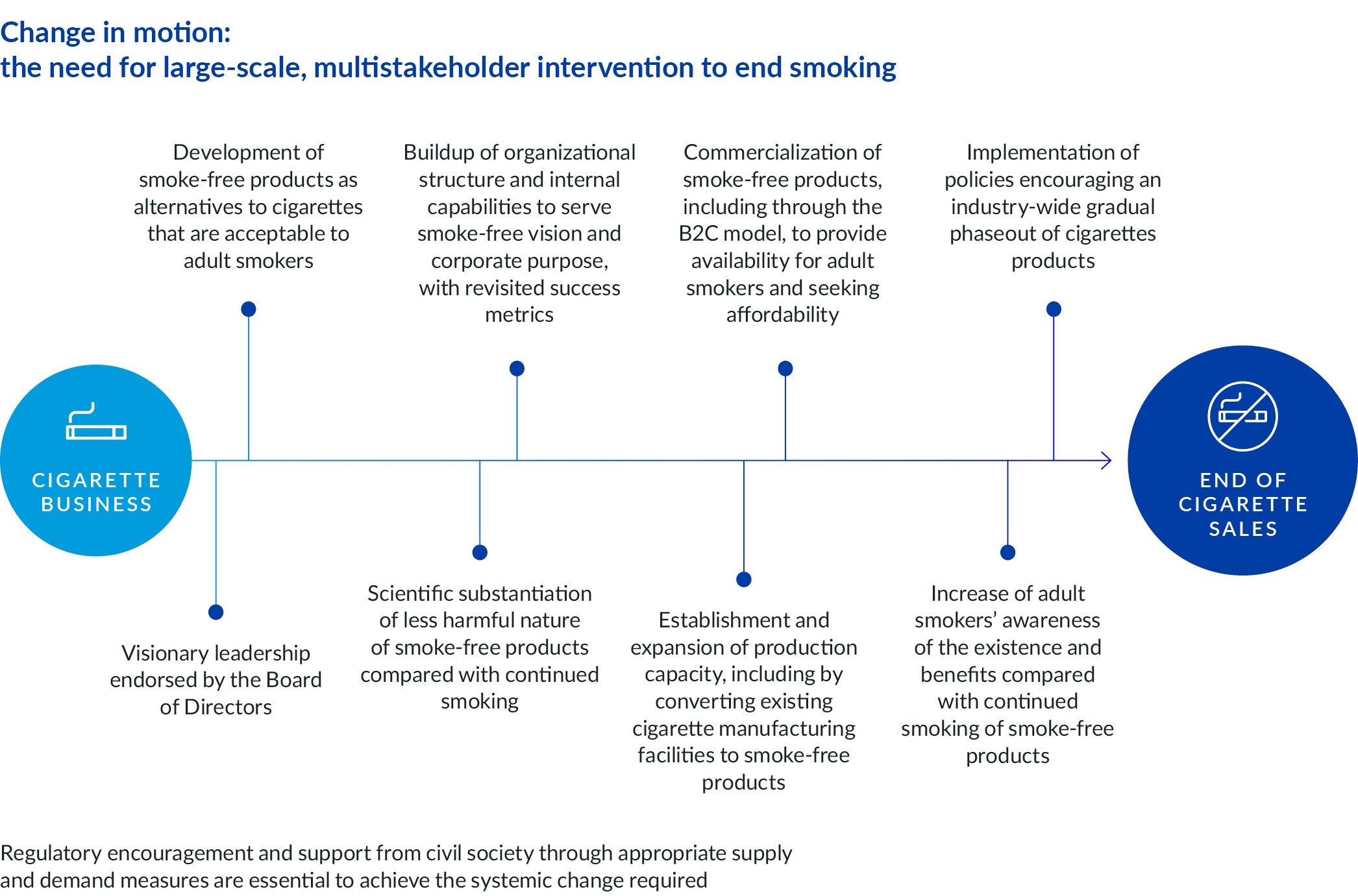 We work within our sphere of influence by demonstrating—through concrete actions and transparent metrics—our commitment to transformation, even when it means cannibalizing our legacy business. We advocate for evidence‑based regulation that can accelerate adoption of smoke‑free alternatives while preventing underage access. We are willing to collaborate with public health authorities, including those who disagree with our harm-reduction approach, because transformation requires diverse voices and perspectives. And we measure progress through Business Transformation Metrics that hold us accountable on this journey and create transparency about where we succeed and where systemic barriers slow our progress.