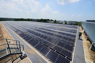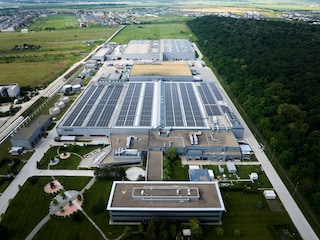 Image: Aerial view of the solar panels on the factory rooftop