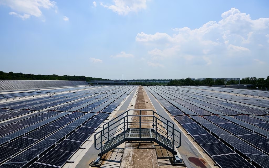 Image: Aerial view of the solar panels on the factory rooftop