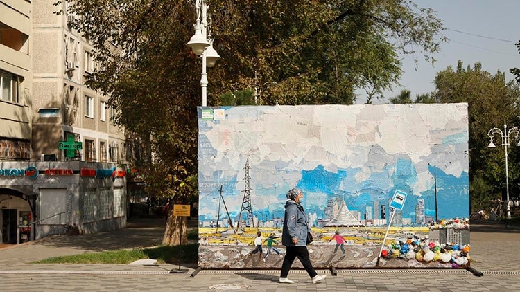 Continuing StopMusor’s theme of changing littering behavior, the Association of Environmental Organizations of Kazakhstan organized a collection of used plastic bags among residents and visitors to Astana. More than 6,000 were collected and given to contemporary Kazakh artist Saule Suleimenova. On the streets of the capital, she then created the artwork “Under the sky of Astana” made entirely of these bags attached to a 3x5 meter canvas.
