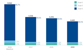 Global greenhouse gas emissions scope 1, 2, and 3 ('000 tons CO2e)