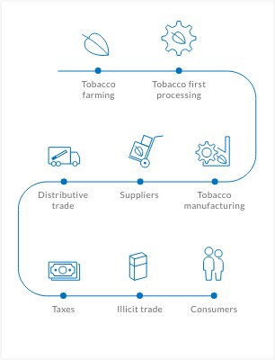 In this phase of the supply chain, more than 23,774 full-time workers are employed, and on average two million tons of unmanufactured tobacco are exported each year, at a value of USD 11 billion.